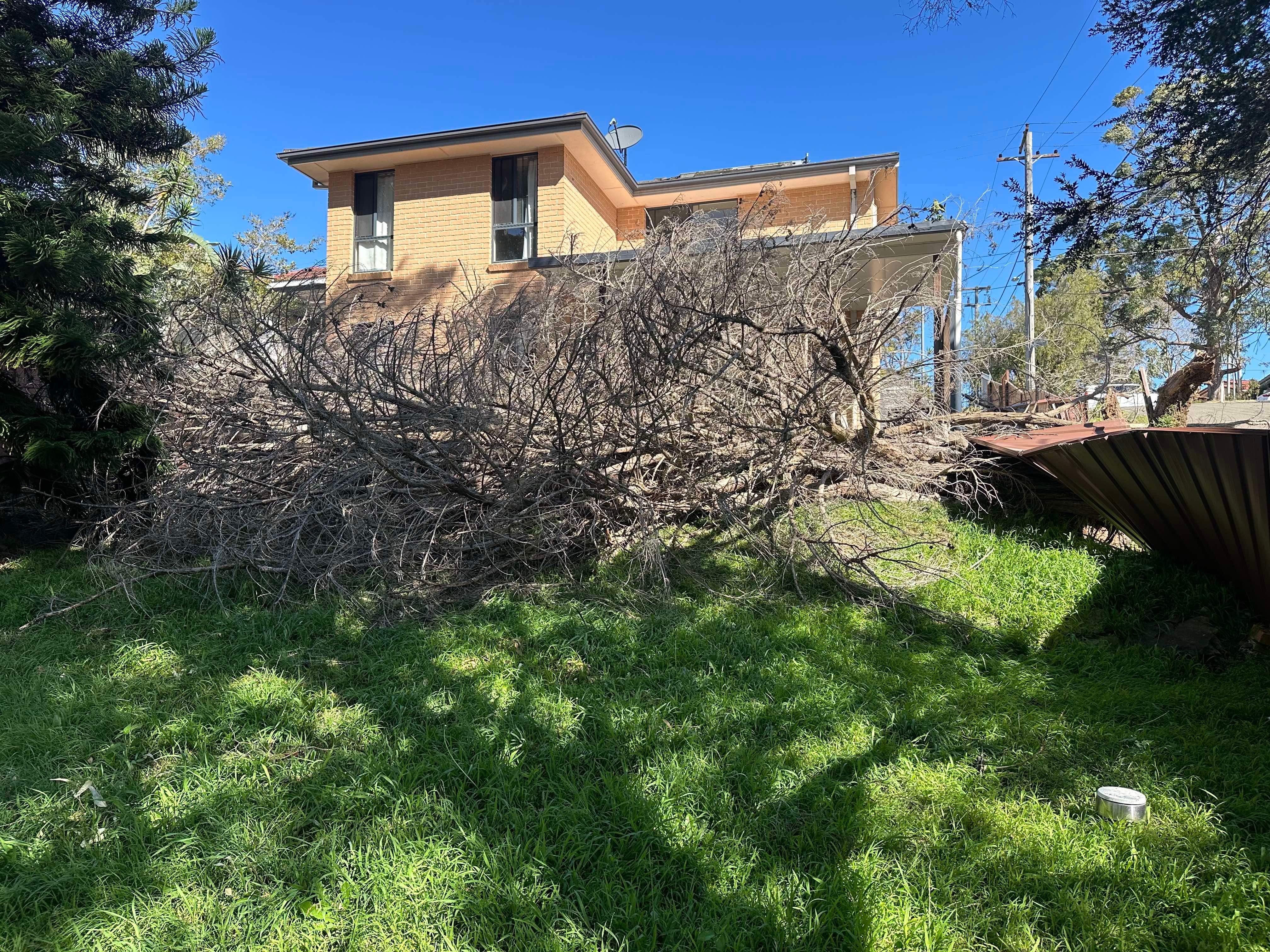 This tree came down during some wild weather in Sydney, with gusts of up to 110km/h recorded on the day. Our client needed this sorted as soon as possible, as the damage to the fence would allow their dog to escape the yard. We were able to assess this tree within 30 minutes of the original call, and were on site to remove the tree within an hour. We provided temporary fencing to secure the yard whilst the client was arranging fence repairs/replacement.